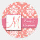 Coral Pink Damask Wedding Favor Pegatina Pink