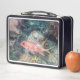 Coral Reef Longspine Squirrelfish Silvery Red Naranja-Gold Body Stripes - Adorning esta encantadora caja de almuerzo es un pez ardilla longitudinal navegando por la barrera de coral. Esta especie vive en arrecifes de coral en mares tropicales y templados cálidos.