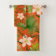 El coral vivo con la palma pone verde colorway. Las hojas y las flores tropicales hermosas se pintan con un arco iris de acuarelas. Este diseño es evocador de las impresiones de la camisa de hawaiana de los años 40 y del 50s. Este diseño viene en varios colorways únicos.