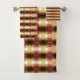 El fondo coralino o el blanco en este juego de toallas de baño de diseño se pueden cambiar a cualquier color para que se ajuste a la decoración del baño. Los colores son ciruela, coral, blanco, cal y verde profundo.
