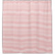 Elegante cortina de ducha de tela hecha con un patrón de rayas horizontales de coral y blanco. Incluyen accesorios de baño a juego.