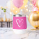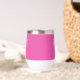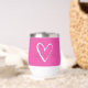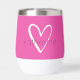 Mantén tu bebida refrescante y fría con este elegante vaso de vino de acero inoxidable con un nombre de pila sobre un bonito corazón blanco sobre un fondo rosado caliente. COINCIDIENDO con los artículos de nuestra tienda.