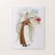 El Vintage Ellen Clapsaddle cuenta con un chica colonial que recorta un pastel antes de hornear en el horno. ¡Mantengan a sus nietos ocupados con el tradicional rompecabezas que sacas cada año para ayudarlos a evitar su hambre antes de la gran cena!