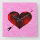 Corazón con flecha sobre reloj de escarcha rosada