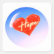 Un pegatina alegre con un corazón rojo y la palabra Esperanza sobre un círculo degradado azul.