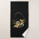 Marco dorado en forma de corazón, decorado con oro, joyas y mariposas blancas sobre fondo negro.