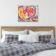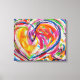 Los colores brillantes del arcoiris giran alrededor de este colorido corazón lleno de alegría y amor. La pintura se representó en acrílico. Personalice la impresión de arte de lienzo envuelto en pintura cardíaca con su propio texto e imágenes usando la opción de Personalizar. ¡Haz regalos especiales de arte de El día de San Valentín, Boda, compromiso, bebé o canvas de amor! Las ganancias de esta venta apoyan a la organización sin fines de lucro 501(c)3 DonnaBellas Angels.