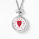 Regalo de Reloj de collar. Con un corazón de amor rojo y números de reloj en un fondo blanco.