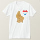 Una bandera luxemburguesa en forma de corazón se coloca junto a un mapa de Luxemburgo en esta camiseta claramente patriótica.