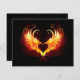 Ángel dispara el corazón con las alas flameantes sobre fondo negro.