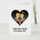 Romántico diseño de corazón cósmico con dos amantes bajo las estrellas con luna creciente y zorro desierto. Perfecto para aniversarios, el día de San Valentín y regalos románticos.