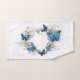 Corazón dorado, con flores morfo realistas azules y blancas. Morfo. Diseño con morfo de mariposas azules.