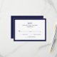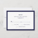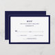 Estas elegantes y elegantes tarjetas RSVP para bodas incluyen texto azul marino de moda sobre un fondo blanco, bordeado por la marina clásica.