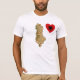 Una bandera albanesa en forma de corazón se coloca al lado de un mapa de alivio de Albania en esta camiseta distintivo patriótica.