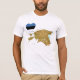 Una bandera estonia en forma de corazón se coloca al lado de un mapa de alivio de Estonia en esta camiseta distintivo patriótica.