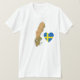 Una bandera sueca en forma de corazón se coloca al lado de un mapa de alivio de Suecia en esta camiseta distintivo patriótica.