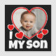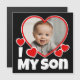 Amo a mi hijo con una fotografía Personalizado del corazón. Subir la imagen de tu foto la moldeará automáticamente en un corazón. Ideal para padres, padres, madres, para su hijo. Por su cumpleaños, aniversario, Navidades, el día de San Valentín y más. Diseño de corazones rojos, fuente/texto negro.