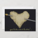 Hermosa fotografía en color de una bola de lana bebé bouclée de color amarillo pálido en forma de corazón sobre un fondo azul marino muy oscuro. He perforado una aguja de tejer gris a través de ella. ¡Como una flecha en el corazón! Creé un sutil patrón de cuadros pastel para la parte posterior. Perfecto para un anuncio de embarazo neutral en cuanto al género, revelación del sexo del bebé o invitación a una fiesta de baby shower. La parte trasera es totalmente personalizable para que puedas ingresar toda tu información en un abrir y cerrar de ojos. Esta tarjeta está disponible en rosa para niña, azul para niño y amarillo para una tarjeta neutral en cuanto al género. Me esfuerzo por crear diseños modernos y originales, pero divertidos, lindos y extravagantes.