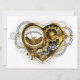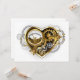 Corazón mecánico, volumétrico, de vapor punk con manómetro de presión, acero y engranajes dorados sobre fondo blanco. Estilo Steampunk.