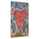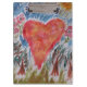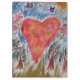 Pintada en vivos tonos pastel, esta llamativa acuarela original "corazón del planeta" retrata el espíritu vivo que infecta nuestra Tierra y el mundo natural que depende de ella para la vida. Un sol intenso y feroz brilla desde el cielo azul claro mientras las mariposas revolotean entre las escarlatas amapolas rojas que están floreciendo en el bosque de verano, alrededor del vibrante corazón rojo, naranja y amarillo de la Madre Naturaleza.