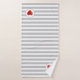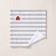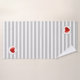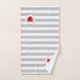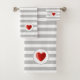 Toalla elegante acondicionada con un bonito corazón con rayas blancas y grises plateadas en el fondo. toallas modernas de moda.