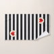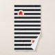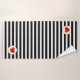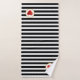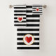 Toalla elegante con un bonito corazón con rayas blancas y negras en el fondo. toallas modernas de moda.
