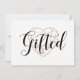 Este elegante certificado de regalo presenta un fondo blanco limpio con un moderno toque de oro rosa geométrico y una moderna tipografía negra que dice "talentoso". La parte posterior es blanca y negra y tiene mucho espacio para que pueda personalizares con la información de su tienda o empresa.