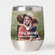 Cute Heart Love You Mom's Day Photo Insulated Wine Tumbler presenta tu foto favorita con el texto "love you mom" (ama a tu mamá) en un escritura blanca moderna con un corazón y tus nombres a continuación. Un regalo perfecto para la madre por el Día de la Madre, cumpleaños, Navidades, vacaciones y más. Diseñado por ©2022 Evco Studio www.zazzle.com/store/evcostudio