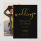Una elegante y sencilla invitación de boda que presenta tipografía de escritura moderna con un corazón dorado chic sobre un fondo negro. Personalice con los detalles de su día especial de boda en letras modernas y una foto especial en el reverso. Diseñado por Thisisnotme