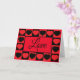 Corazón negro y rojo en cuadrados negros y rojos y "Amor" en el centro, tarjeta de saludo.