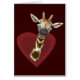 el color de fondo puede cambiarse! linda jirafa dulce saliendo de un marco oscuro de corazón rojo