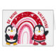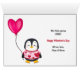 Aquí hay una linda tarjeta de San Valentín para un niño, especialmente un nieto, un hijo o una hija. La parte delantera está decorada con un arcoíris rojo y rosa, con dos pingüinos delante. Un pingüino lleva un arco de cabello rosado y sostiene una valentina en forma de corazón. El otro pingüino lleva una chaqueta roja y saluda a las olas. El texto curvo rojo en la parte superior dice "BE MINE VALENTINE". En el interior hay otro pingüino sujetando la cuerda a un globo con forma de corazón, y tres campos de texto para personalizar.