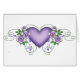 Corazón púrpura hermoso rodeado por los rosas púrpuras y las vides verdes. Personalizable con su texto.