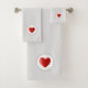 Toalla elegante con bonito corazón rojo sobre fondo plateado. toallas modernas de moda.