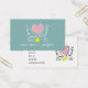 Tarjeta de visita alegre dulce caprichosa del cuidador del corazón y de las alas. Modifique el color de fondo para requisitos particulares para caber su estilo. Enumere sus servicios en el lado opuesto.
