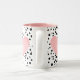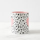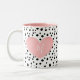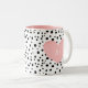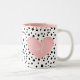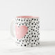 Tome su café matutino en su tazón con un corazón rosado y puntos negros.