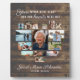 Esta señal conmemorativa es la forma perfecta de expresar un recuerdo de un ser querido que nunca será olvidado. Hermosa cita, fondo de madera rústica y collage en forma de corazón con 15 fotos con el nombre de los seres queridos y fechas. La cita se puede cambiar a cualquier redacción. Honre la memoria de sus seres queridos con una placa conmemorativa especial personalizada para ser un recuerdo preciado. Se puede transferir a cualquier producto que Zazzle ofrece.