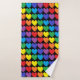 Arte digital abstracto de corazones de color arcoiris con un color más claro que imita una sombra de cada uno contra un fondo negro.