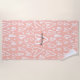Corazones artísticos de doodle en un patrón continuo de dos tonos, rosa y negro, con un monograma escrito a mano personalizado en el centro. Toalla de playa súper linda que puedes personalizar