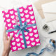Papel de envoltura con corazones blancos sobre fondo rosado caliente. Puede elegir el color de fondo de su preferencia.