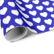 Papel de envoltura con corazones blancos sobre fondo azul real. Personalizar el color de fondo entre otras opciones.