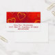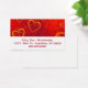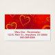 Un diseño rojo con corazones abiertos naranjas y amarillos.