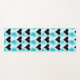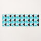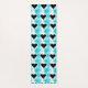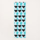 Este diseño gráfico parece brillar, con corazones negros, sobre cuadrados blancos, sobre un patrón abstracto de tablero de ajedrez, turquesa, con sombra de azul.