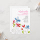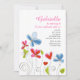 Invite a las huéspedes a su fiesta con este diseño de moda. Las flores rojas y azules caprichosas se emparejan con los corazones rojos "cada vez mayor". Es perfecto para los chicas de todas las edades.