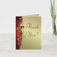 Una ilustración moderna y romántica de tarjeta de agradecimiento con un fondo elegante de color rojo y dorado. El lado izquierdo tiene un pergamino decorativo con corazones rojos a lo largo. Diseñado para ser un tema de boda romántico, pero es hermoso como diseño independiente.