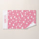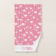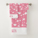 Un adorable juego de toallas de baño con corazones rosas y blancos. El juego incluye toalla de baño, toalla de mano y paño de lavado. Personalice con monograma la toalla de mano y la toalla de baño. Perfecto para el baño de una niña.