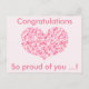 NewParkLane - Tarjeta de graduación dulce y moderna, con un corazón, lleno de un patrón de corazones pequeños en diferentes tonos y tamaños de corazones rosados, y cita: 'Felicidades. ¡Estoy muy orgulloso de ti ...!', en tipografía moderna.