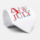 Este diseño de texto está coloreado en rojo y azul. "4 de julio" está impreso. A este diseño se ha añadido un fondo azul o blanco. Esta corbata se puede usar para celebrar las fiestas.