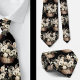 Una corbata con patrón floral en acuarela en negro y blanco presenta un diseño elegante y sofisticado con flores de diversas formas y tamaños, contrastadas con un fondo negro o blanco. Los motivos florales son intrincados, con los pétalos, hojas y tallos representados con líneas limpias y sombreado. El diseño varía desde flores grandes y audaces hasta flores más delicadas y pequeñas, creando una apariencia equilibrada y dinámica.