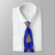 Una linda corbata de Navidades azules y dorados con un patrón festivo de árboles de Navidad dorados en un colorido fondo azul para agregar algo de diversión a tu armario de Navidades esta temporada navideña.